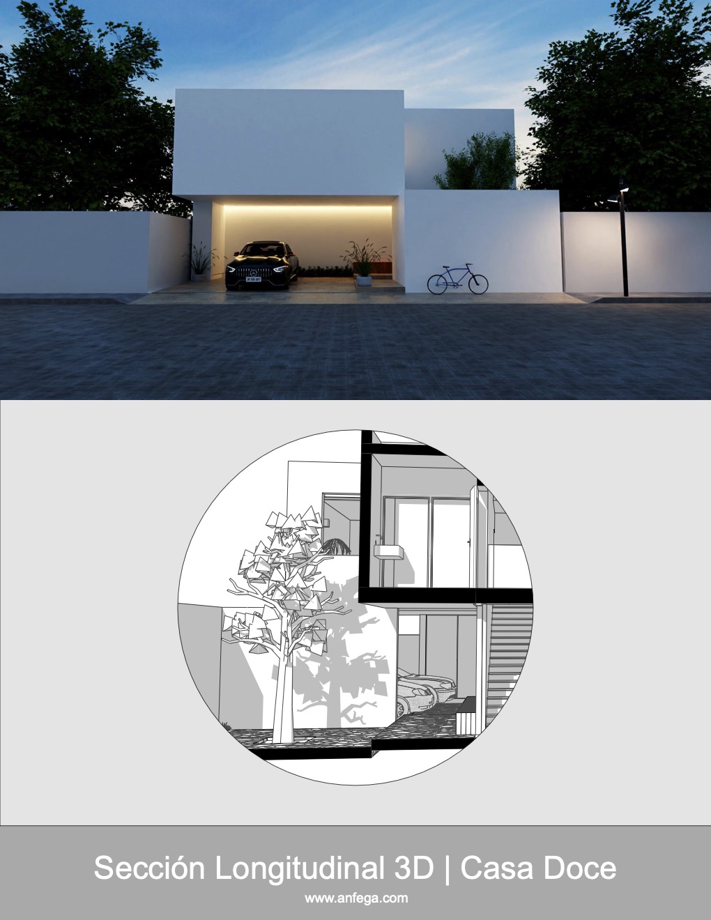 Sección Longitudinal 3D – Casa Doce